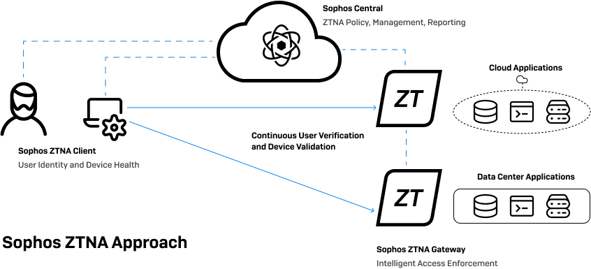 Sophos ZTNA proporciona una alternativa moderna y superior para el acceso remoto. A diferencia de la VPN de acceso remoto, ZTNA conecta a los usuarios a las aplicaciones, no a toda la red. También incluye el estado de seguridad de los dispositivos en las políticas de acceso, garantizando que los dispositivos comprometidos o no conformes no tengan acceso a los datos importantes de la empresa. Simplemente ofrece mucha más seguridad y protección contra el ransomware y las amenazas, además de estar diseñado para los empleados remotos de hoy en día, con una administración más fácil y escalable, y una experiencia más transparente y sin fricciones para los usuarios finales.